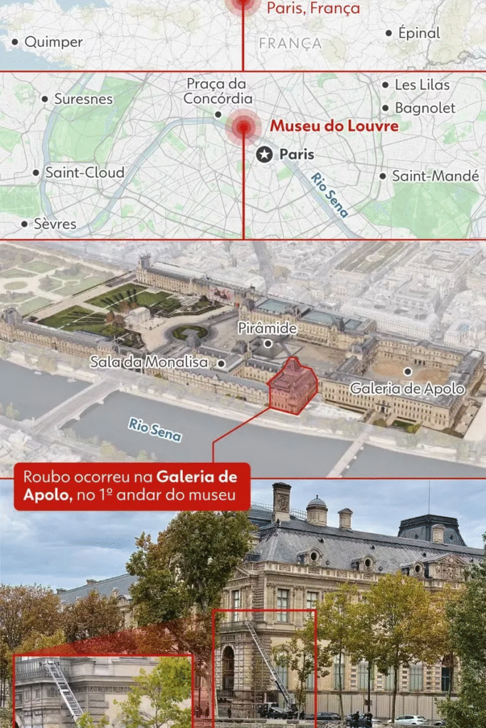 O famoso Museu do Louvre, no coração de Paris, foi palco de um crime cinematográfico na manhã de domingo (19).